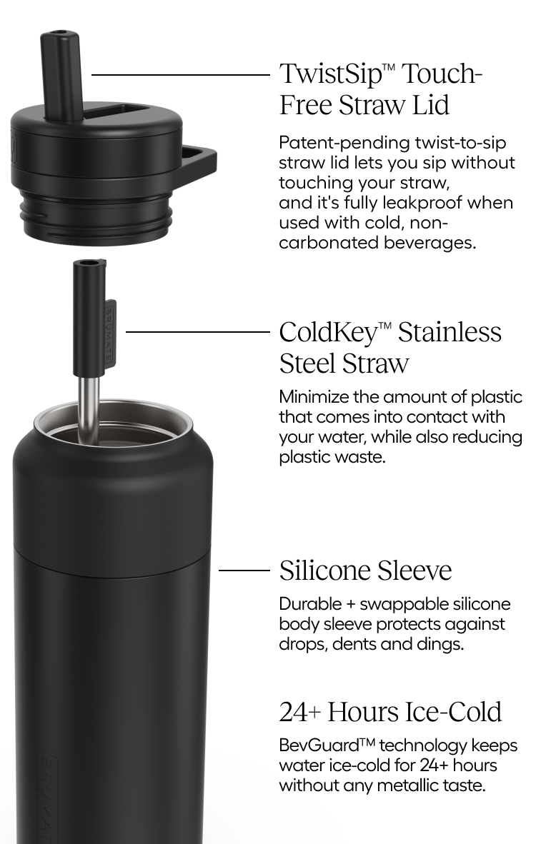 The Rotera series was made for all day hydration. We set out on a mission to create the perfect water bottle, and we did just that. So, what makes it different? The TwistSip™ straw lid offers on-demand sanitary sips, our signature ColdKey™ stainless steel straw prevents plastic from sitting in your water all day, our BevGuard™ technology keeps ice for 24+ hours and the swappable soft-touch sleeve makes this the most durable and customizable insulated bottle ever.