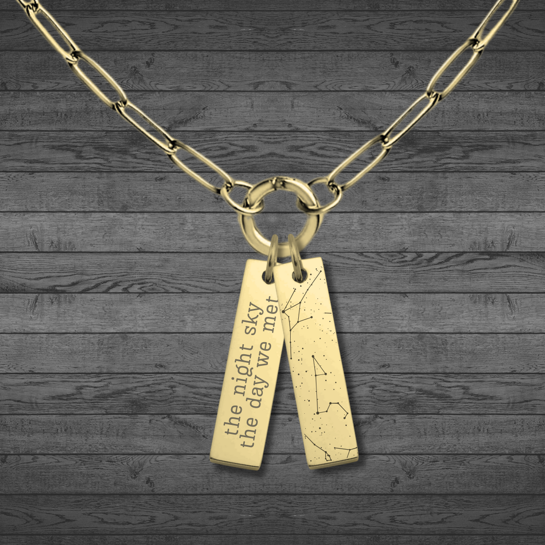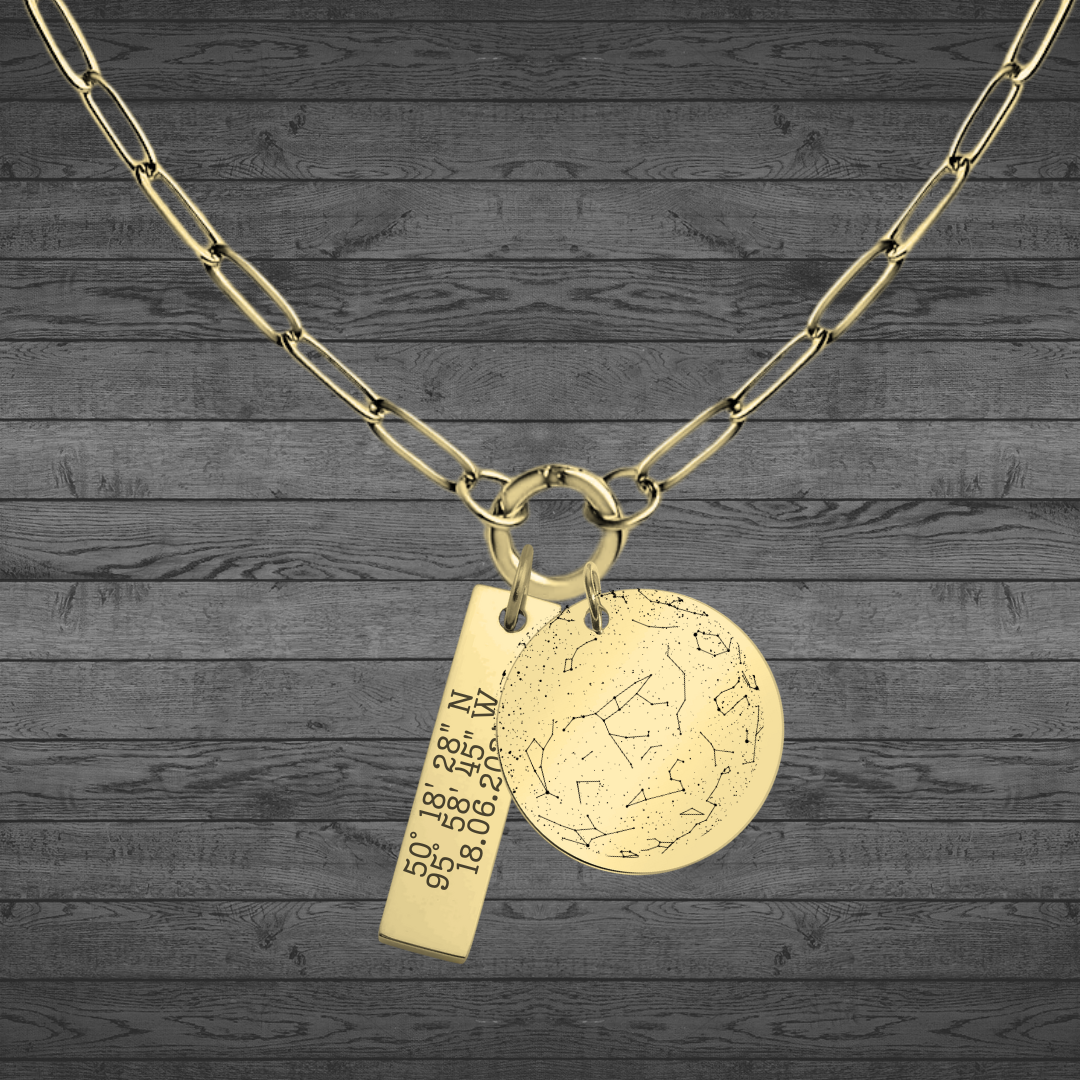 • Includes one custom laser engraved star map pendant (chain not included)