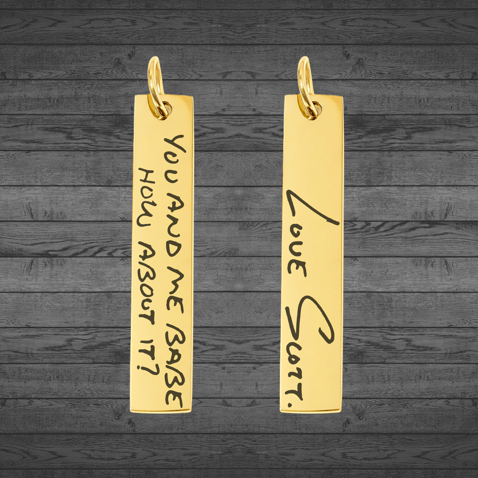 Text, Handwriting or Drawing Laser Engraved Gold Bar Pendant