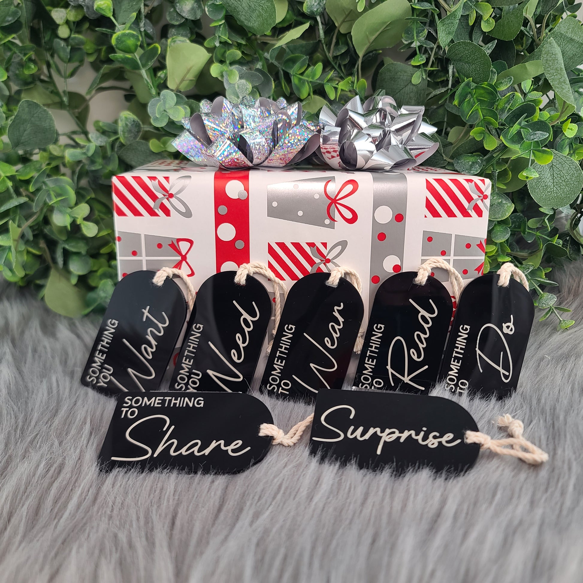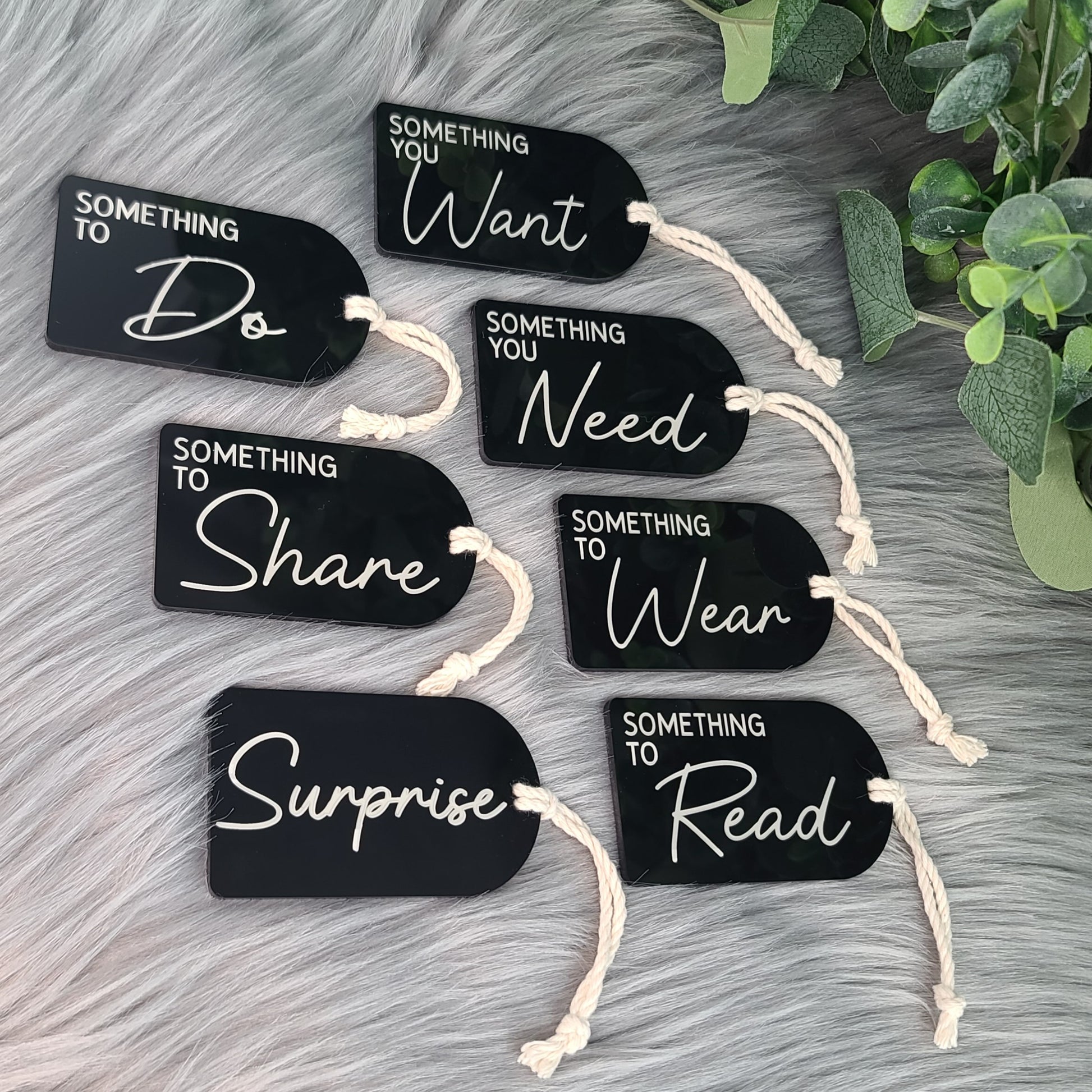 Our Something Gift Tags take gift wrapping to the next level! These acrylic laser-engraved tags will help your presents stand out and provide an easy way to break down your shopping list into these categories to cover all your bases!